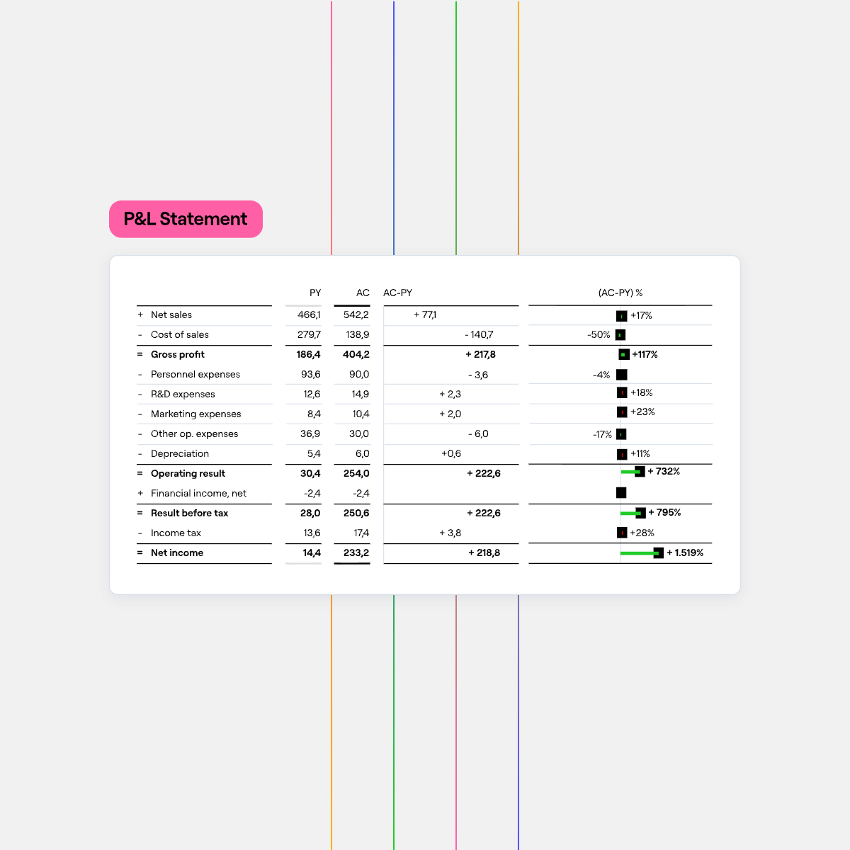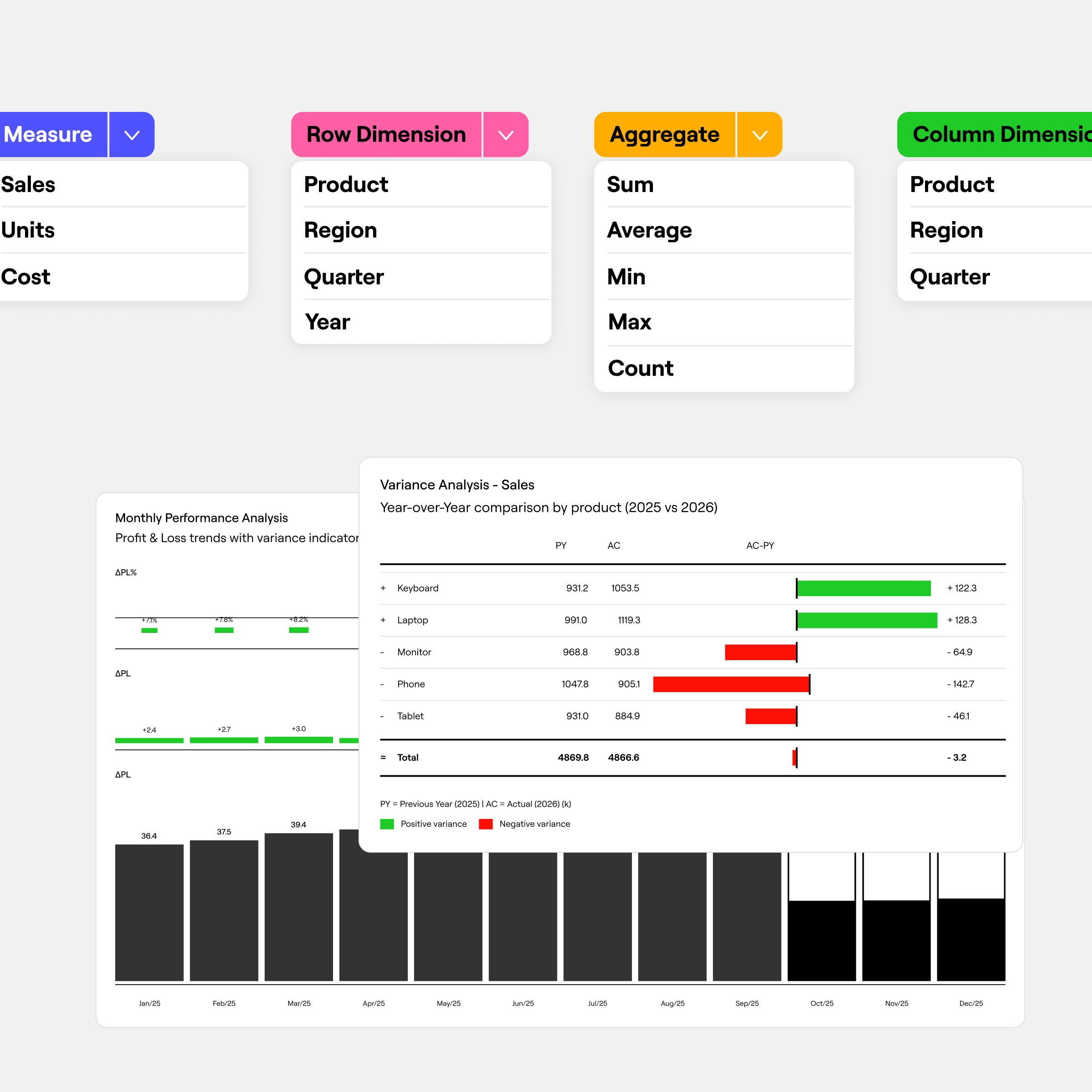 Farseer embeds variance analysis directly into your reporting layer.