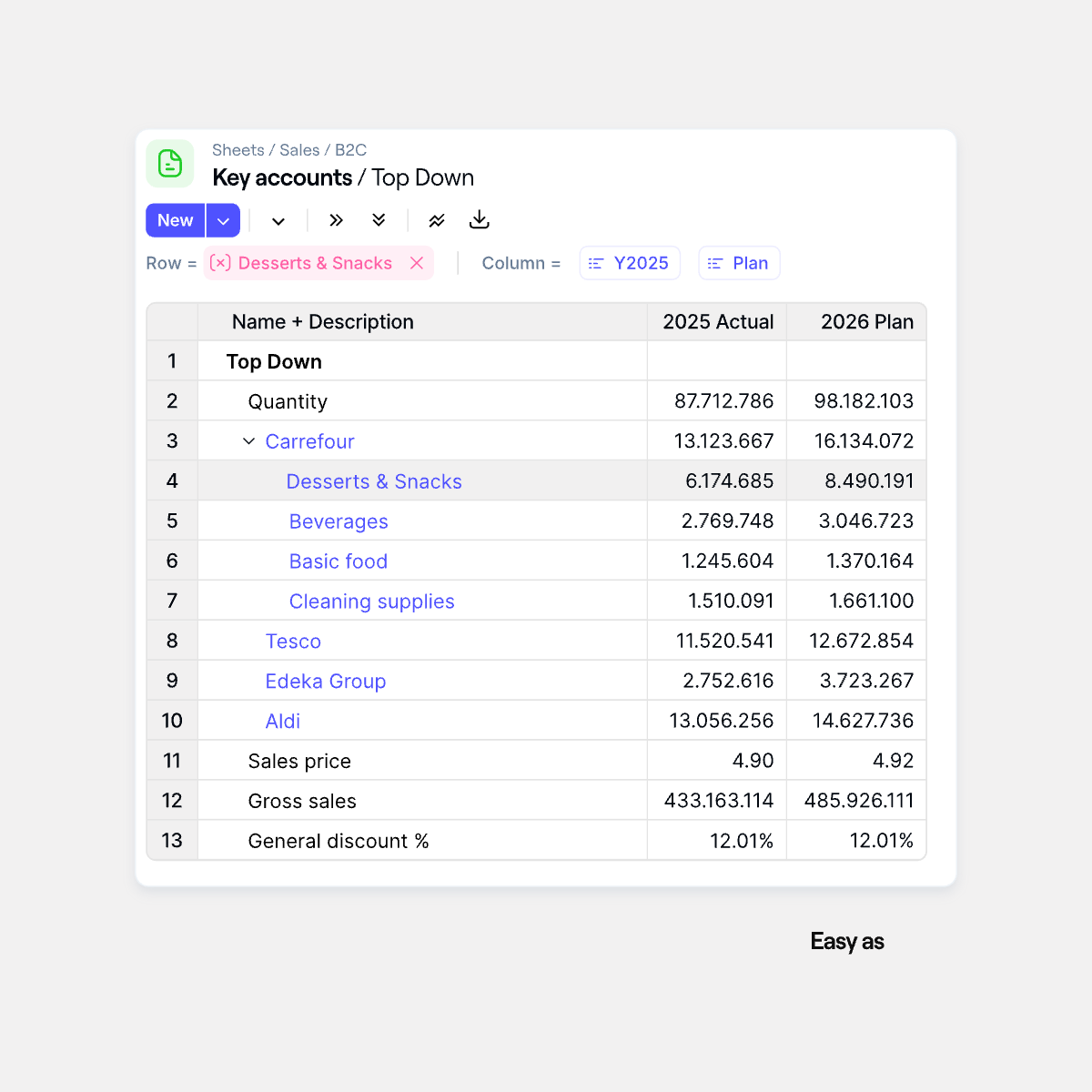 Compare actuals, budget, forecast, and scenarios without exporting data or rebuilding reports.